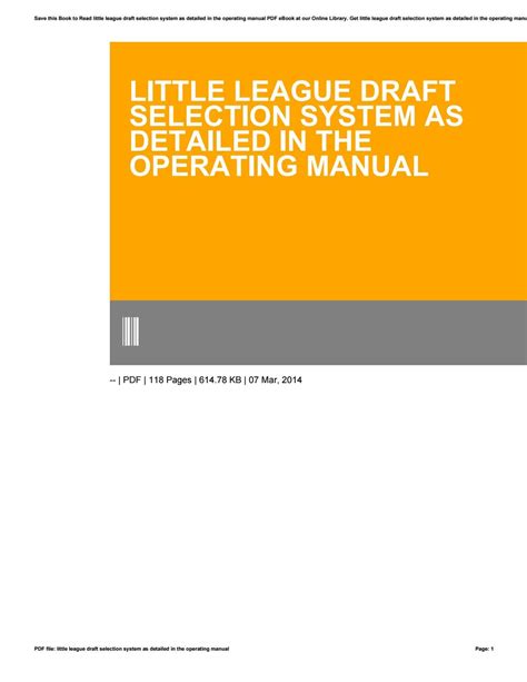 Online PDF Little league draft selection system operating manual Reader Library Genesis